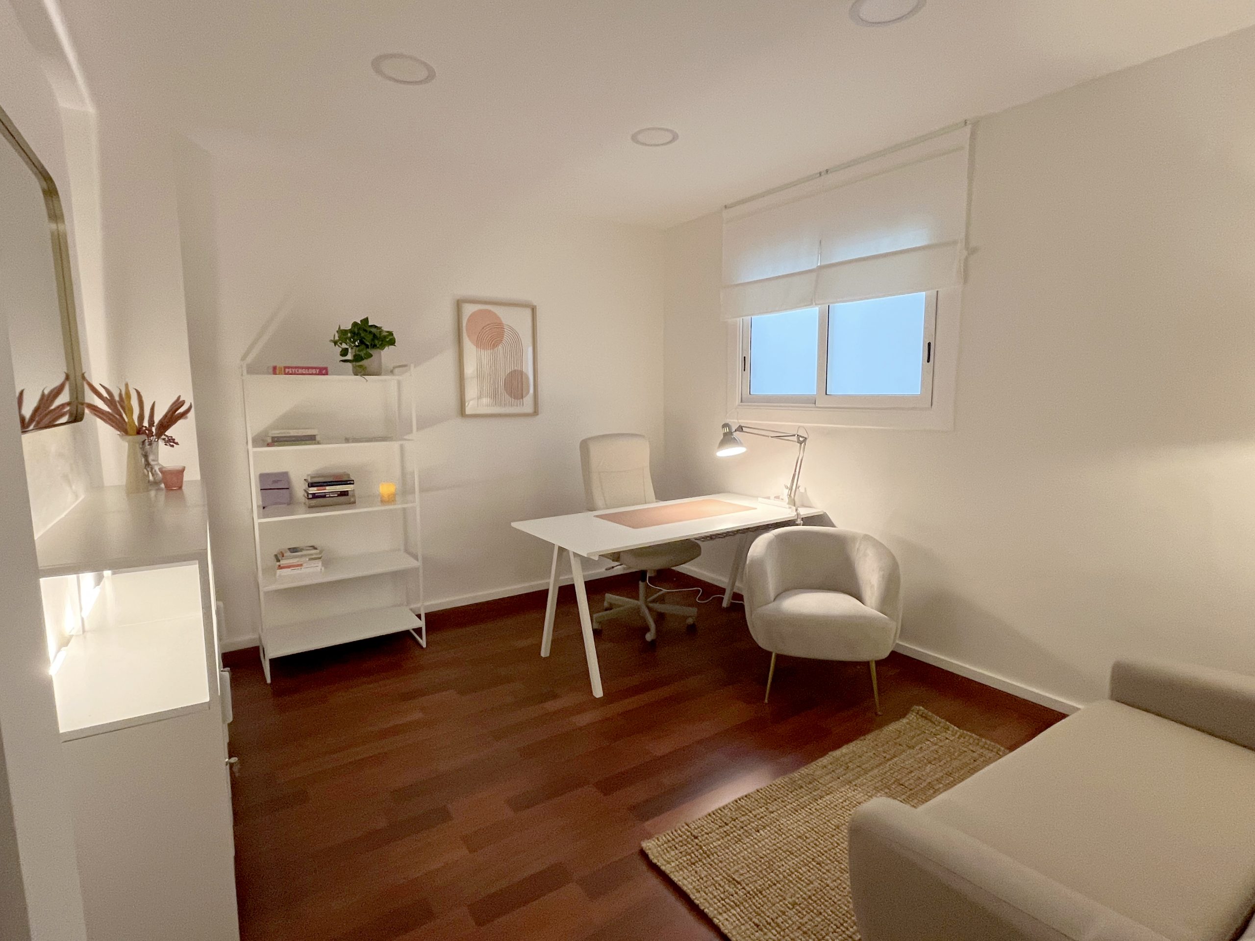 16 m² con un ambiente acogedor y acceso directo desde la sala de espera, ideal para encuentros más amplios, con un sofá para terapias de pareja. Internet de alta velocidad, sofá y sillón, escritorio, almacenamiento con llave para que puedas dejar tus cosas.